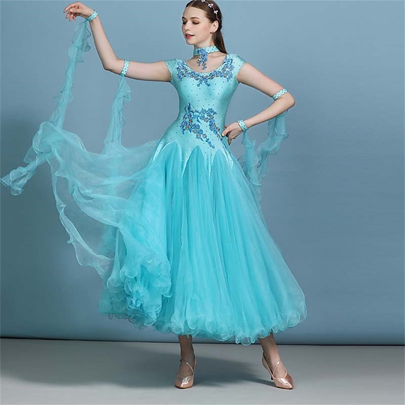Ballroom Dance Dress Split Joint Crystals Competition Dress/ Rhinestones Women's Performance Long Sleeve Spandex