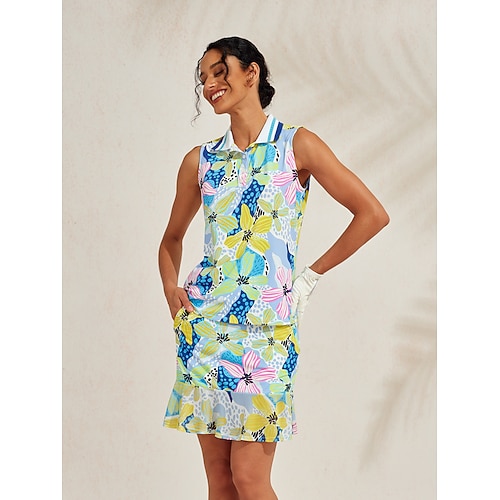Per donna Polo da golf Giallo blu Argento Orange Senza Maniche Abbigliamento da golf da donna Abbigliamento Abiti Abbigliamento