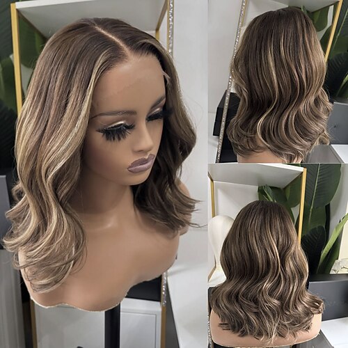 Capelli umani 5x5 Chiusura 13x4 Fronte in Pizzo Parrucca Caschetto corto Riga centrale Capelli brasiliani Ondulato Biondo Marrone Multicolore Parrucca 150% 180% Densità dei capelli con Capelli di