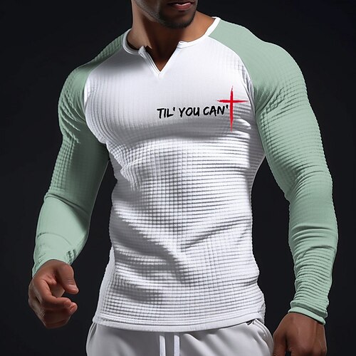 Maglietta da uomo con Bibbia Crusaders Fino a Quando Puoi' Maglietta a maniche lunghe Raglan Collo V Christian Ispirazionale Grafica Cross Rossa Texturizzata Waffle Slim Fit Muscle Fit Chiesa