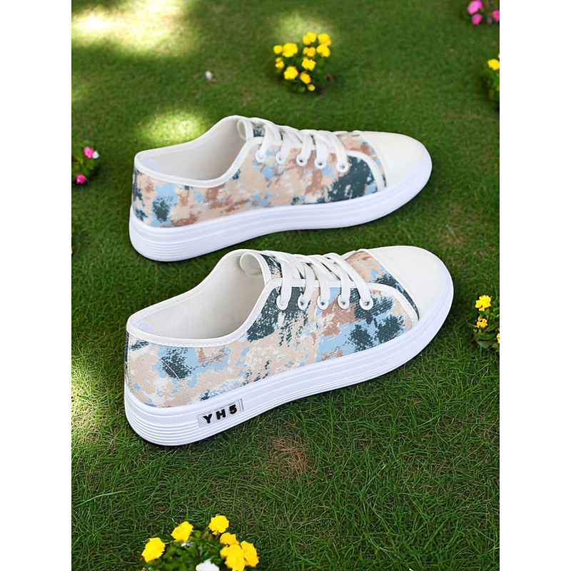 Women's Colorblock Canvas Sneakers – Lightweight Lace-Up Casual Shoes for Daily Wear, Travel and Street Style
