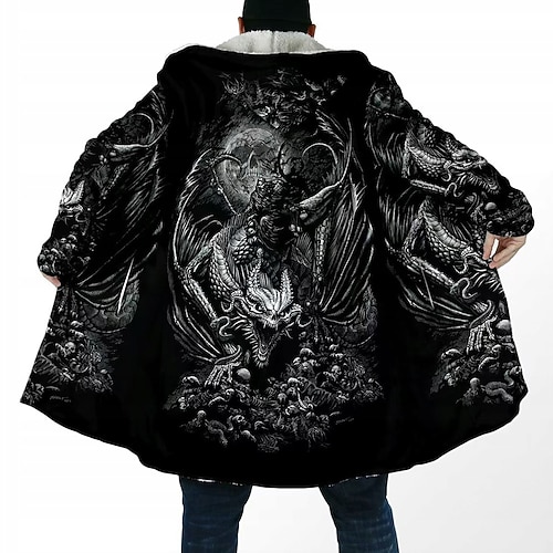 Herren Wikinger Wintermantel Fleecejacke Mantel Thermowarm Bequem Lässig Alltagskleidung Reißverschluss Tasche 3D-Druck Herbst Winter Mit Kapuze Langarm Schwarz 1 Schwarz Schwarz 2
