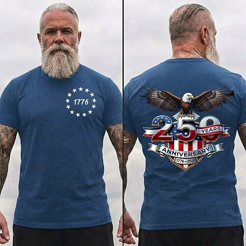 4 luglio 2026 250° Giorno della Memoria T-shirt da Uomo Manica Corta Stampa 3D Bandiera USA Casual