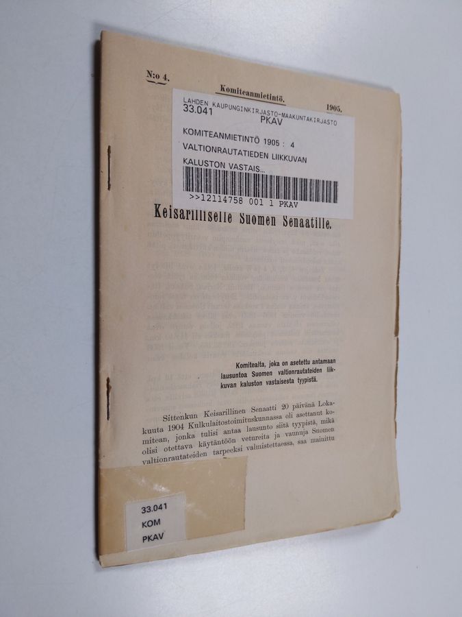 Komitealta, joka on asetettu antamaan lausuntoa Suomen valtion-rautateiden liikkuvan kaluston vastaisesta tyypistä