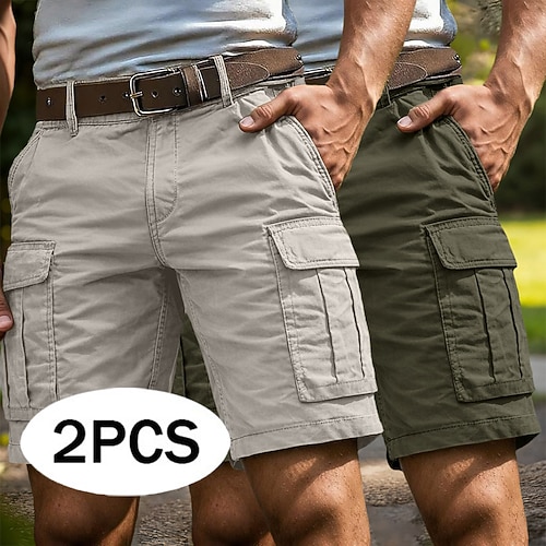 Herren Cargohose Cargohosen Cargo-Shorts Shorts Freizeitshorts Tasche Elastischer Bund Einfach Einfach Atmungsaktiv Kurz Lässig Outdoor Streetwear Mode Streetwear Schwarz Khaki SchwarzMarineblau