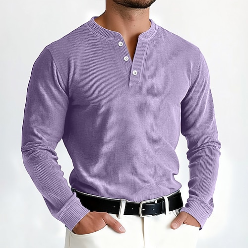 Herren Cordhemd T-Shirt Langarm Henley Sommer Herbst Winter Einfarbig Einfach Mode Designer Lässig Knöpfe Warm Lässig Täglich Outdoor Hellblau Marineblau Purpur Top T-Shirt für Herren