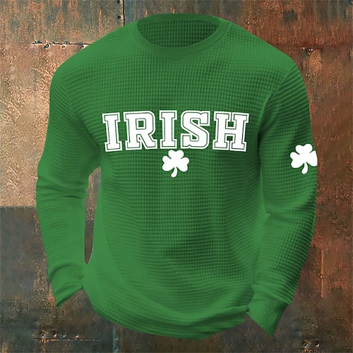 Giorno di San Patrizio San Patrizio Festa di San Patrizio Per uomo Trifoglio Camicia a nido d'ape Maglietta Manica Lunga maglietta Girocollo Camicia Sport Moda Classico Quotidiano Vacanza Feste Nero