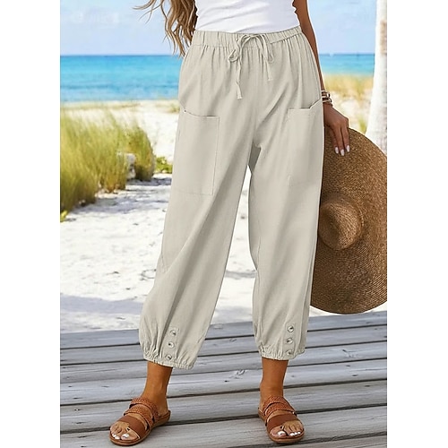 pantaloni capri da donna 100% cotone pantaloni estivi casual comodi tinta unita tasca elastico vita pantaloni vacanza casa tutti i giorni nero bianco verde militare blu navy blu estate primavera autunno