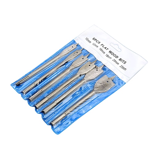 Set di 6 punte da trapano a testa piatta esotiche, trapano piatto per lavorazione del legno, punta da trapano per navi, utensile per apertura fori, non elettrico, punta da trapano industriale per