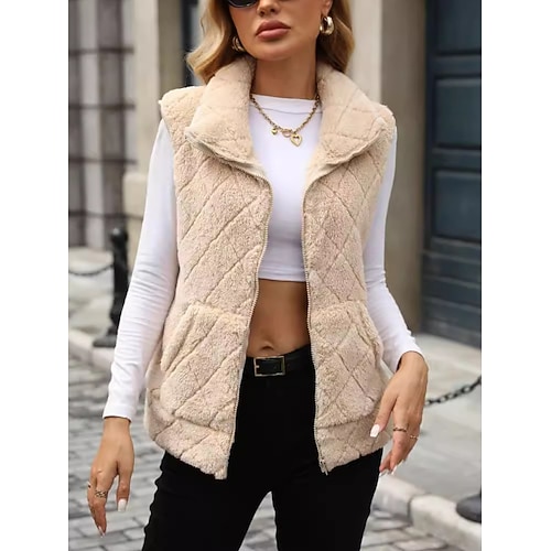 Per donna Gilet in pile Giacca Sherpa Confortevole Traspirante Cerniera Tasca Casual Semplice Vacanza Streetwear Casuale Abbigliamento quotidiano Cerniera Regolare Collo ripiegato Vestibilità regolare