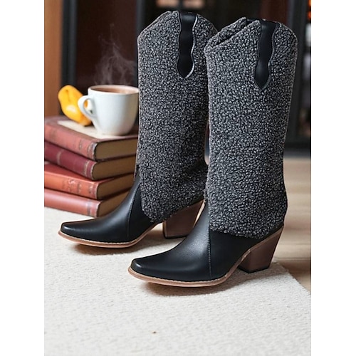 stivali da donna in shearling bianco con tacco spesso - stile natalizio accogliente, perfetti per abiti da festa e riunioni festive