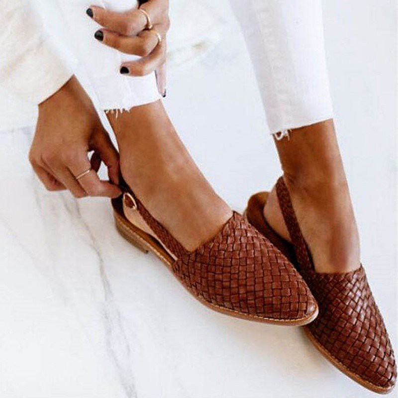 Women's Black Woven Flat Mules with Adjustable Slingback Strap - Stylish Summer Casual Shoes