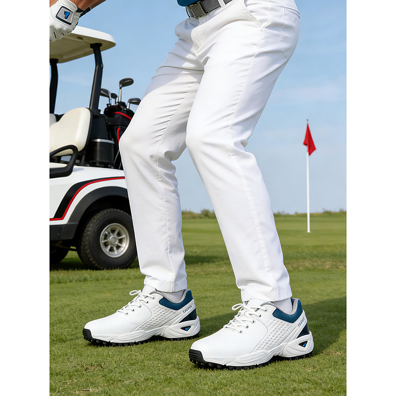 Men's White Golf Shoes with Cushioning, Lightweight Breathable, Ideal for Golfers Outdoor Sports
