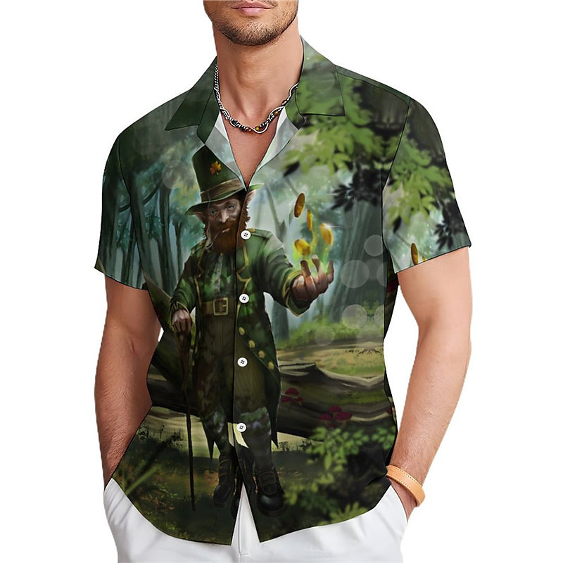 St.Patrick's Day Four Leaf Clover Artistic Abstract Men's Shirt Daily Wear Going out Weekend Summer Turndown Short Sleeves Yellow, Dark Green, Brown S, M, L 4-Way Stretch Fabric Shirt St.