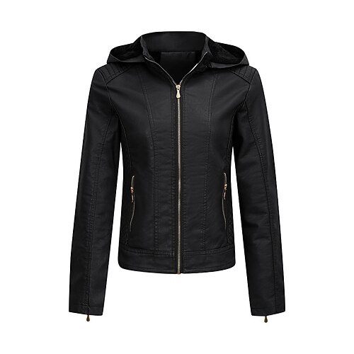 Per donna Giacca in Ecopelle Giacca da Biker Caldo Confortevole Cerniera Tasca Casual Tinta unica Vacanza Streetwear Casuale Abbigliamento quotidiano Regolare Con Cappuccio Vestibilità regolare