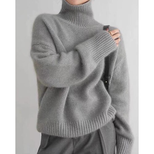 Per donna Felpa Maglione Streetwear Casual Tinta unica Dolcevita Lavorato a maglia Manica Lunga Top Regolari Maglia Quotidiano Ferie Weekend Blu marino Cammello Autunno Inverno