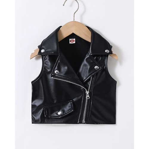 Bambini Ragazze Giacca in pelle nera Giacca di pelle Tinta unica Moda Cerniera Tasca All'aperto Cappotto Capispalla Dai 4 anni in su Autunno Argento Nero Rosa