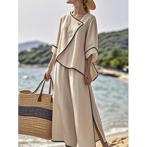 Per donna Normale Pantaloni in lino e cotone Streetwear Tinta unica Senza Maniche Scollo a V Quotidiano Uscire Vestibilità regolare Nero Bianco Giallo Estate