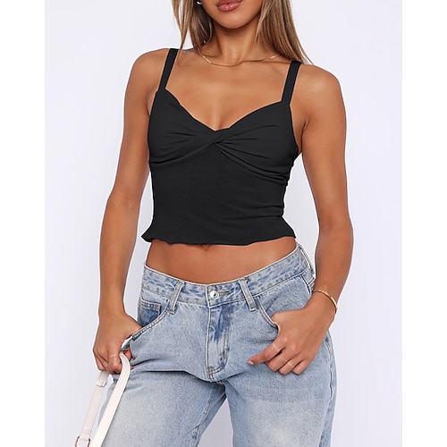 Per donna Maglietta Tinta unica Moda Sexy Casual Senza Maniche Collo a U Top corti Quotidiano Uscire Weekend Patchwork Nero Bianco Rosa Estate