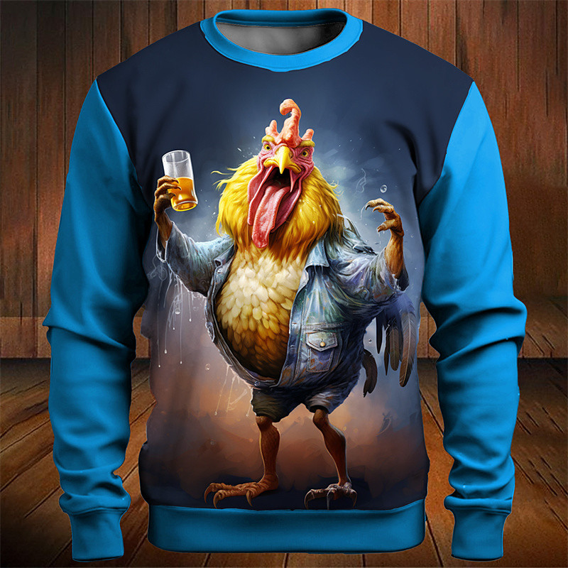 Men's Graphic Rooster Funny Sweatshirts Golf Pullover Sweatshirt Long Sleeve Sweatshirt Crew Neck Fashion Daily Casual 3D Print Vacation Holiday Going out Print Spring Fall