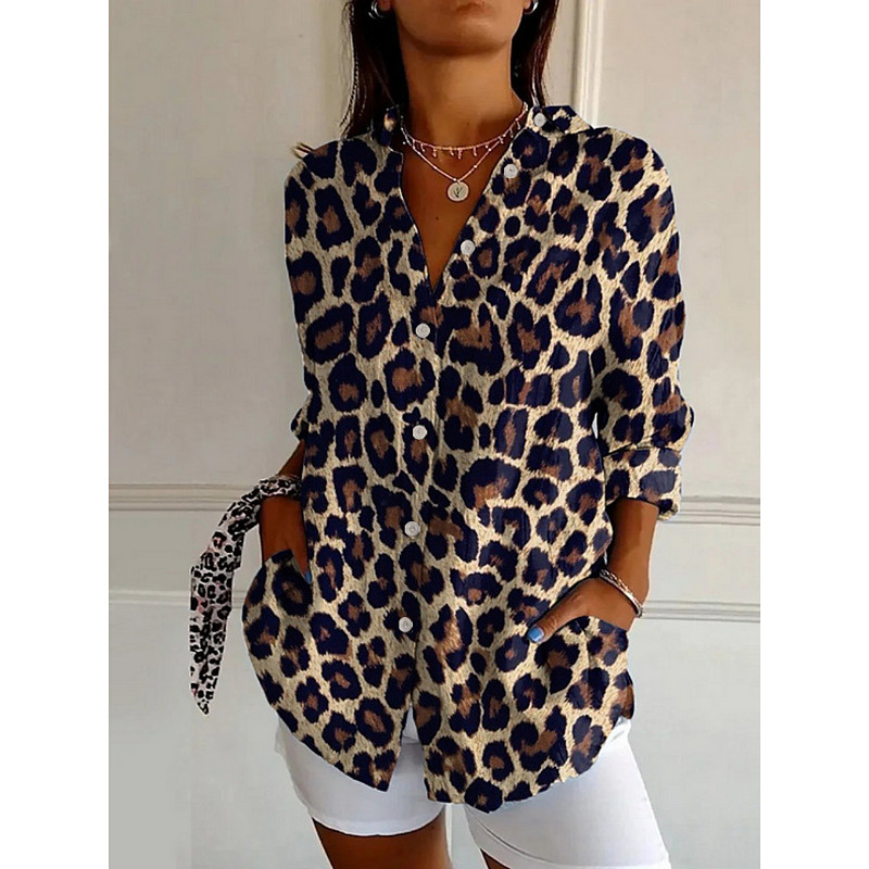 Women's Shirt Leopard Striped Active Daily Stylish Long Sleeve Shirt Collar Regular Tops Daily Holiday Buttons Print White Brown Spring Fall