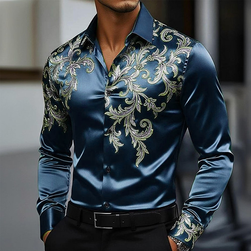 Men's Floral Print Ethnic Flowers Shirt Satin Shirt Dress Shirt Long Sleeve Vintage Retro Vacation Dailywear Summer Spring Fall Turndown 3D Print Button Up Shirts Blue Dark Red Dark Green Green