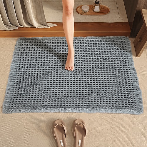 Tappetino da bagno in stile waffle, antiscivolo, lavabile, super assorbente e ad asciugatura rapida, piccoli tappetini da bagno, arredamento da bagno in stile fattoria, 18'' x 30'', cachi e bianco