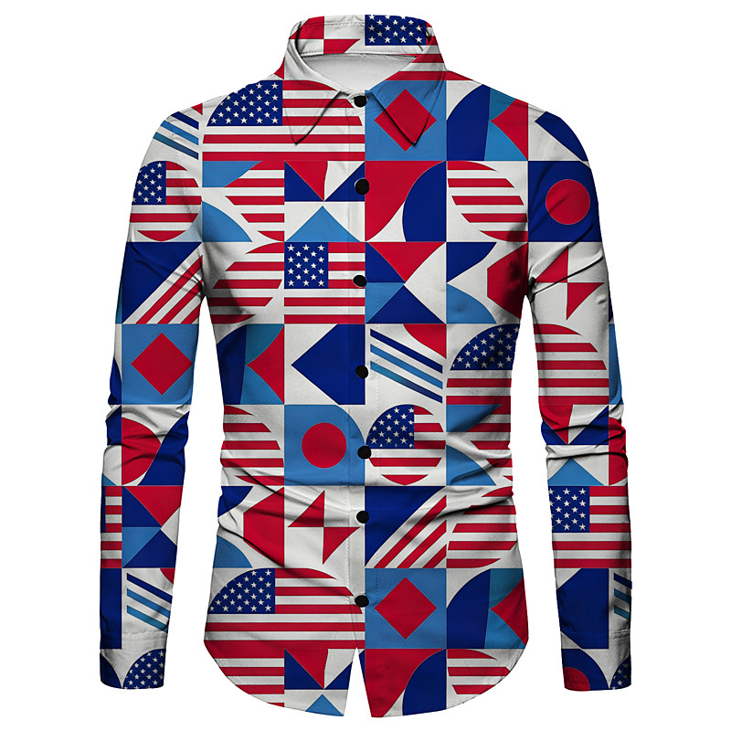 American 250 Retro Vintage 1970s Shirt Aloha Shirt Long Sleeves Hippie Geometic Ethnic Fancy Dress Men's Masquerade 4th of July Party Independence Day Semiquincentennial Adults' Shirt