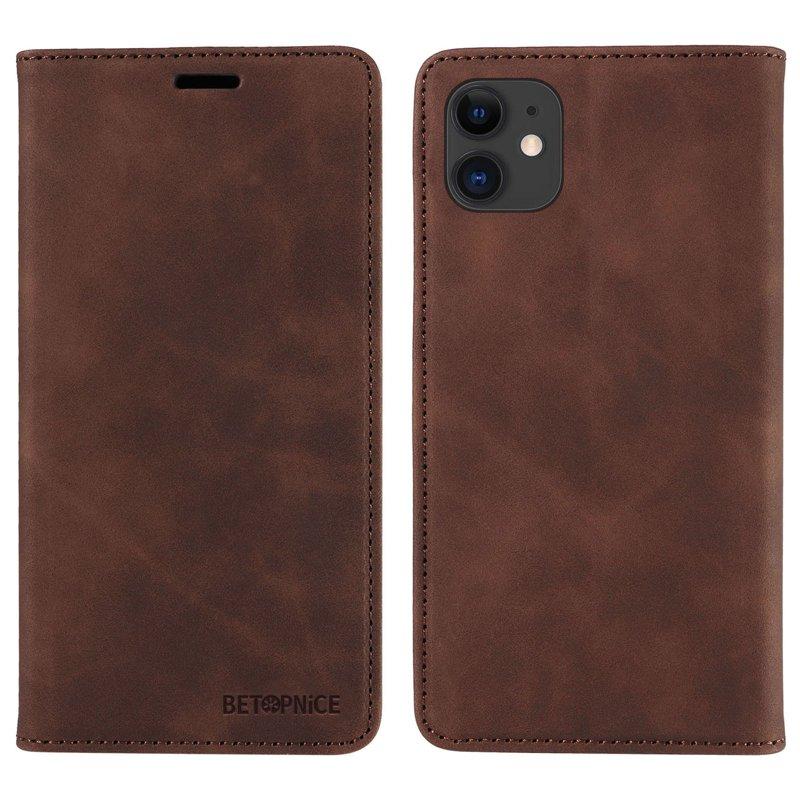 BETOPNICE 003 iPhone 12 / 12 Pro Plånboksfodral Konstläder - Brun