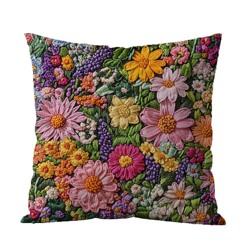 Floral Pattern Pillow Cover 2D Flat Print Soft Comfortable Cushion Case with Faux embroidery for Living Room Sofa Bedroom Home Decoration