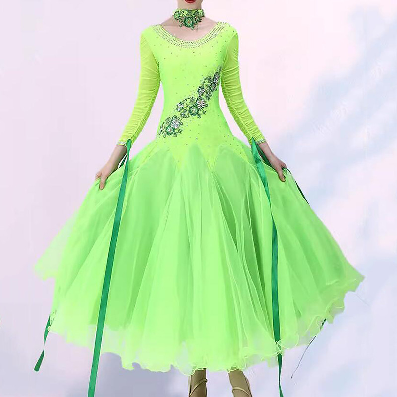 Ballroom Dance Dress Crystals / Rhinestones Women's Performance Party Long Sleeve Elastane