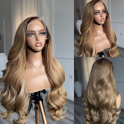Capelli vergini non trattati 13x4 Pizzo Frontale Parrucca Parte laterale Brasiliano Ondulato Multicolore Parrucca 130% 150% Densità dei capelli con i capelli del bambino Capelli evidenziati