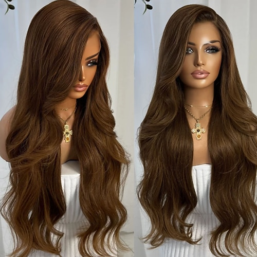 Capelli umani 5x5 Chiusura 13x4 Fronte in Pizzo Parrucca Riga Libera Capelli brasiliani Ondulato Marrone Naturale Parrucca 150% 180% Densità dei capelli con Capelli di Bambino Attaccatura Naturale