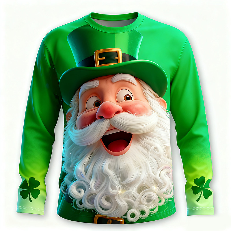 St. Patrick Men's Shamrock Lucky Irish T Shirt Long Sleeve T shirt 3D Print Crew Neck Shirt Exaggerated Designer 3D Vacation Party Street Green 1# Green 2# Green 3# Summer Spring Fall Clothing Apparel