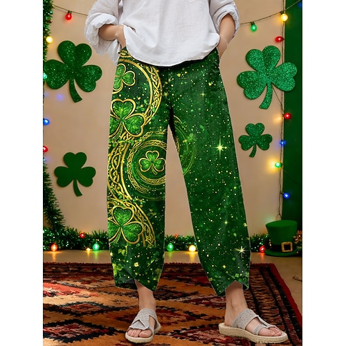 Damen Stoffhosen Urlaub Vintage Ethno-Stil Volle Länge Hohe TaillePantsSt. Patrick Tag Grafik Kleeblatt Elastischer Bund Bequem Komfort Atmungsaktivität Unelastisch Täglich Outdoor Straße Gelb Grün