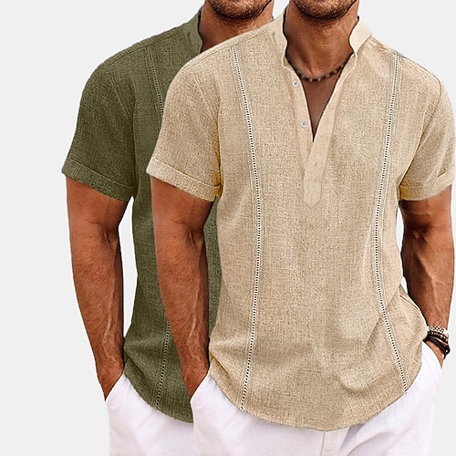Per uomo Camicia Camicia di lino Camicia Guayabera Camicia popover Camicia Estiva Abbigliamento da spiaggia Semplice Vacanza Crociera Bianco kaki Bianco blu navy VerdeCachi KakiBlu Navy Manica