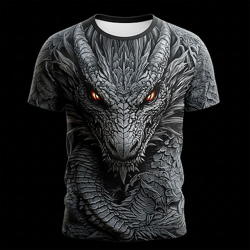 Herren Tiermotiv Drache 3D T Shirt Kurzarm T-Shirt 3D-Druck Rundhalsausschnitt Hemd Übertrieben Designer Party Ferien Blau Rote Purpur Sommer Frühling Bekleidung S M L XL XXL XXXL