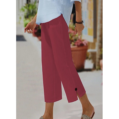 Per donna Pantaloni di lino Chino Simillino Tasche laterali Spacco cascante Polpaccio Nero