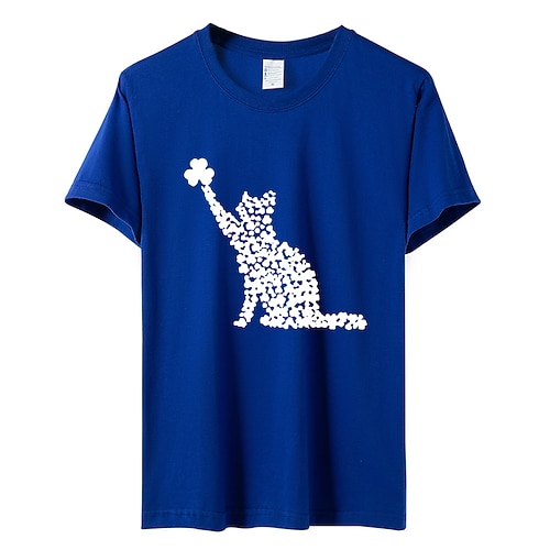Per donna maglietta Gatto Trifoglio Festa di San Patrizio Informale Nero Vino Rosso Stampa Manica corta Di tendenza Rotonda Standard Primavera estate