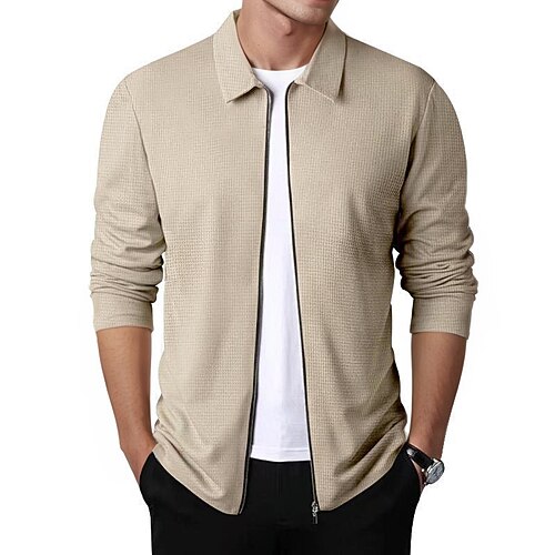 Per uomo Giacca a nido d'ape Giacca di transizione Quotidiano Leggero Tasca Primavera Autunno Semplice Classico Bavero Regolare Nero Bianco Blu reale Cachi Grigio chiaro Giacca