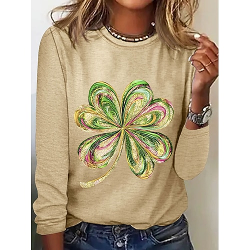 Festa di San Patrizio Per donna Maglietta Trifoglio Elegante Classico Casual Manica Lunga Girocollo Top Regolari Quotidiano Stampato Blu Nero Bianco Cachi Primavera Autunno