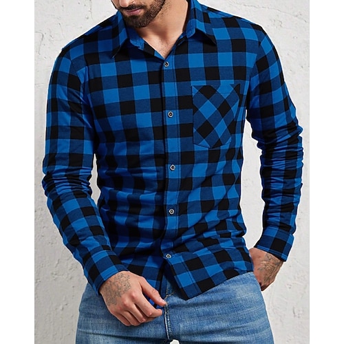 Men's Shirt Flannel Shirt Overshirt Plaid Outdoor Street Black Red Orange Brown Long Sleeve Winter Spring Fall Clothing Apparel