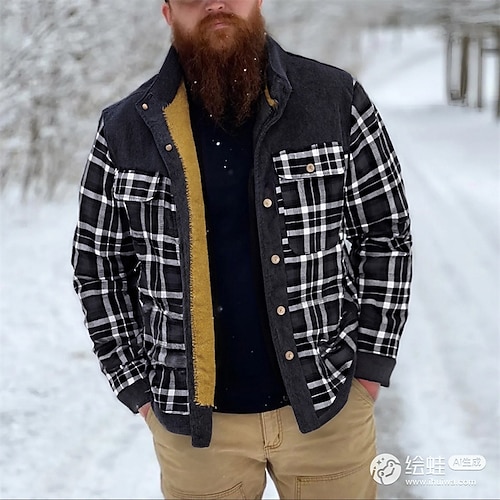 Per uomo Giacca Invernale Giacca Camicia Giacca in Pile Giacca Casual Vacanza Quotidiano Calore Termico Tasca Pile Autunno Inverno Plaid Moda Streetwear Collo alla coreana Regolare Nero Rosso Verde