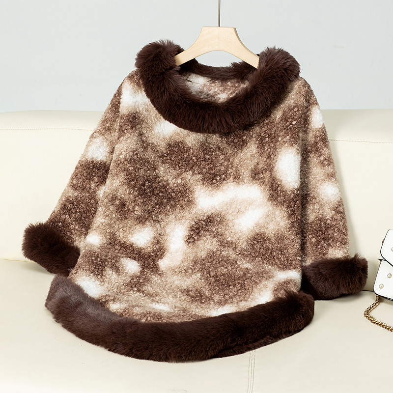 Women's Shrug Casual Soft Tie Dye Ribbed Boat Neck Knitted Faux Fur Trim Long Sleeve Regular Tops Knit Outdoor Daily Weekend Khaki Apricot Fall Winter