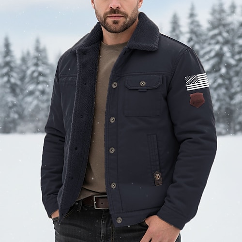 Per uomo Bandiera Americana Giubbotto bomber Giacca Sherpa Calore Termico Vintage Casual All'aperto Casa Tasche Multiple Giacche di cotone Cappotti invernali Autunno Inverno Collo rovesciato in pile