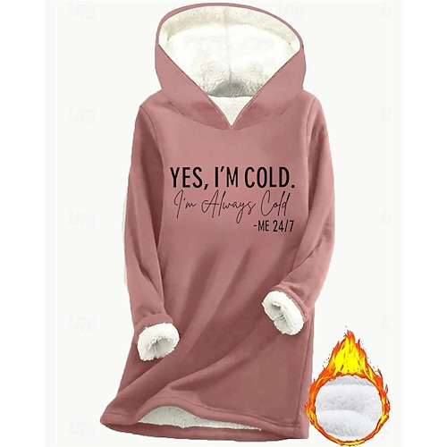 Per donna Felpa con cappuccio Grafico Lettera Caldo Casual Pile Sherpa Manica Lunga Con Cappuccio Top Regolari Streetwear Abbigliamento Quotidiano Casuale Stampato Foderato in pile Rosa scuro Blu