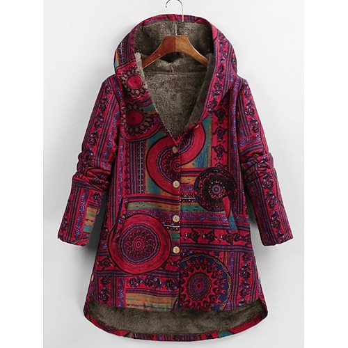 Per donna Giacca in Pile Giacca Sherpa Confortevole Traspirante Tasca Stampato Vintage Casual Floreale Vacanza Streetwear Abbigliamento quotidiano Uscire Monopetto Regolare Con Cappuccio Vestibilit