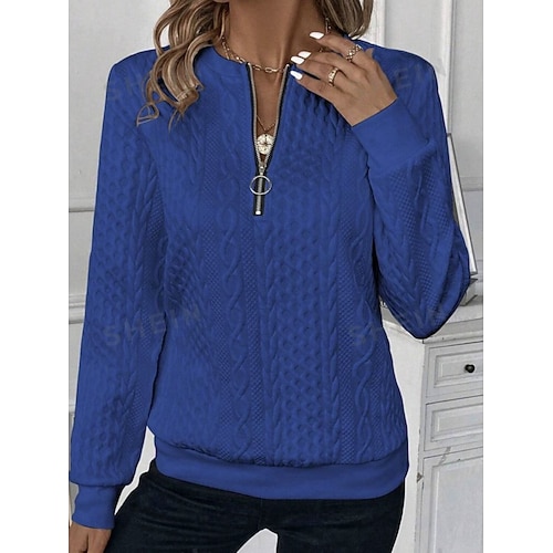 Per donna Blusa Tinta unica Elegante Casual Manica Lunga Girocollo Top Regolari Quotidiano Cerniera Nero Bianco Rosa Blu Primavera Autunno Inverno