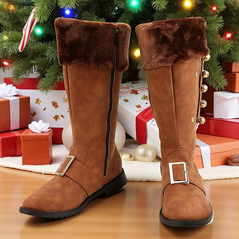 Men's Santa Claus Costume Boots with Faux Fur and Gold Button Detail, Perfect for Christmas Parties and Holiday Celebrations