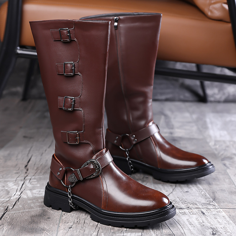 Men's Brown Faux Leather Strap Boots – Stylish and Functional, Perfect for Winter Adventures, Hiking and Casual Winter Wear